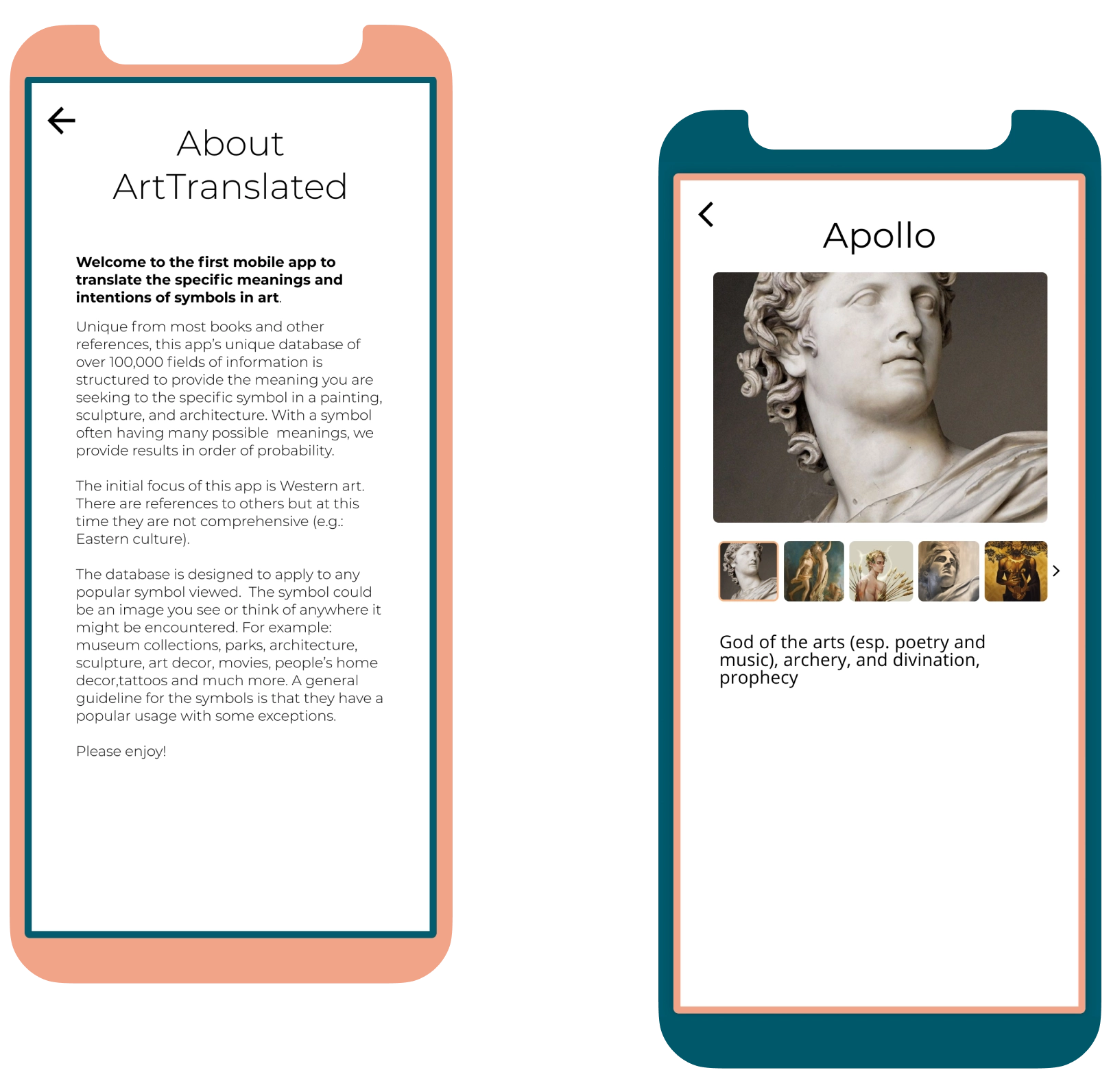 A cross-platform mobile app for art lovers to identify sculptures, paintings, and pottery using text or voice search — with a custom database of 27,000+ artworks and high-precision search algorithms.