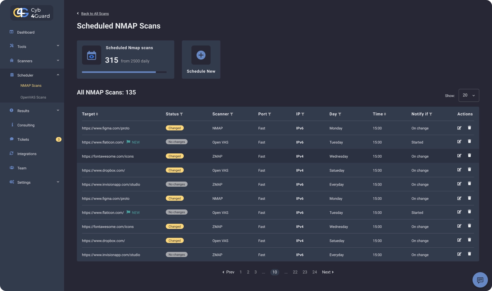 A cybersecurity platform with dedicated Docker-based microservices for vulnerability scanning — including NMAP, OpenVas, DNS queries, IP tools, and automated monitoring with OAuth authentication and Stripe payments.