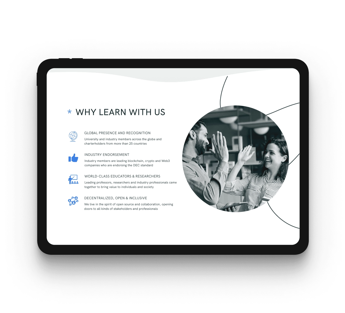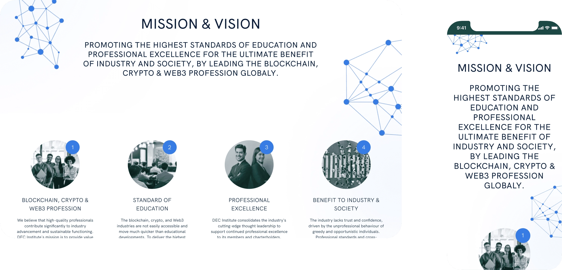 DEC Institute is a comprehensive e-learning platform providing the ability to purchase the course, study, take an exam on the course, and receive a certificate. The product consists of several software solutions: a website built with Webflow, e-commerce functionality configured using Shopify, an Admin panel, e-mail service, and several integrations with recognized industry-leading testing and certification providers including Accredible, Pearson Vue, and Edu Next.