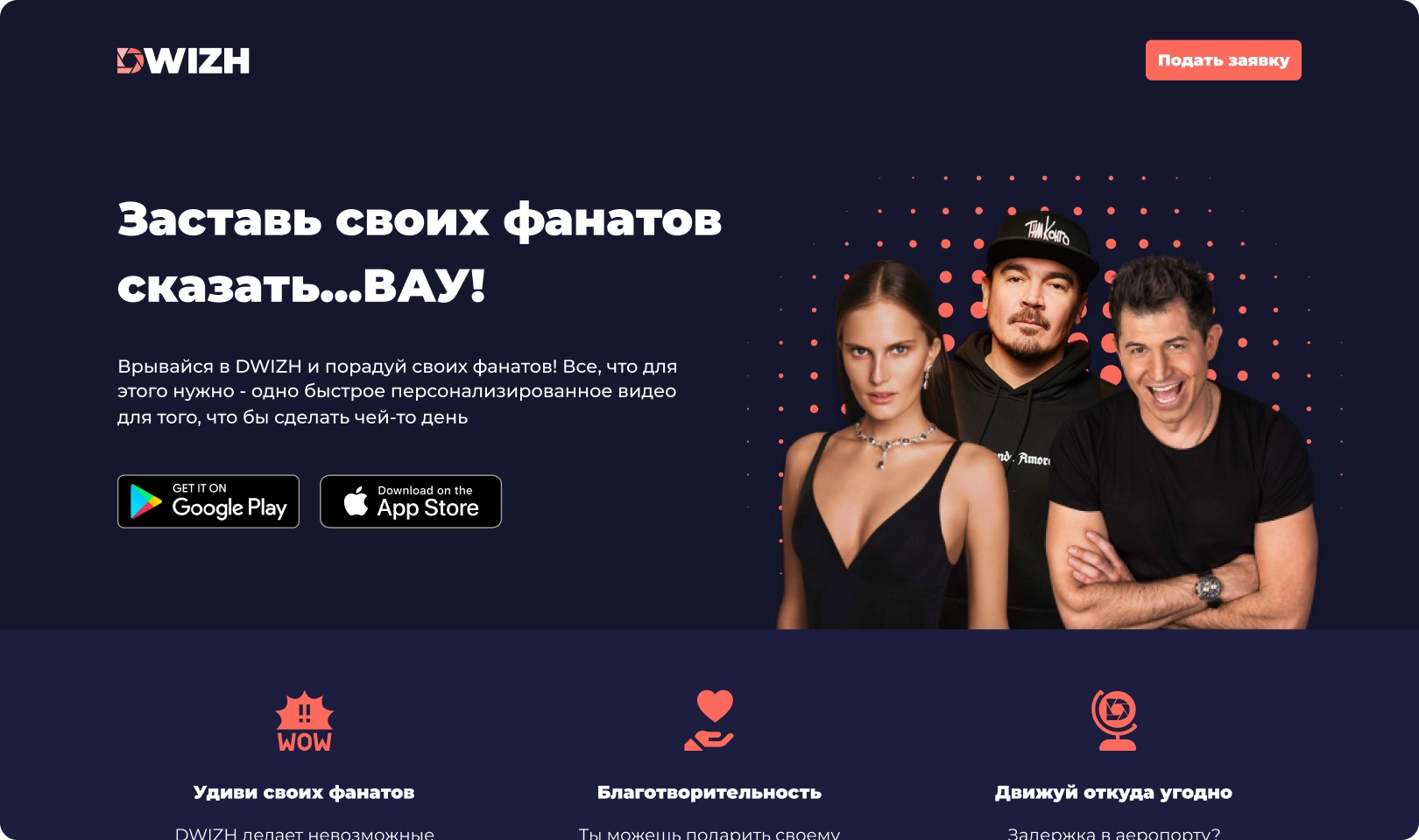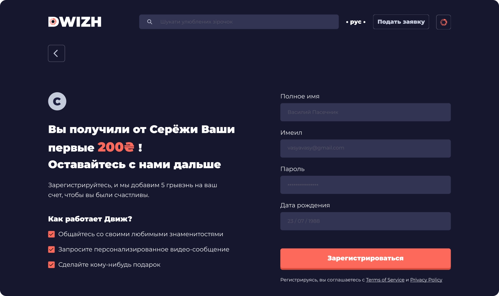 Our team created a simple yet advanced platform where any person can get a video greeting from their favorite celebrity collaborating with this entertainment service. The platform offers a wide choice of celebrities – writers, actors, singers, musicians, comedians, athletes, entrepreneurs, models, gamers, and even pets! Now, celebrities have a convenient tool for communication with their fans and monetization of their fans’ requests. No exceptional condition is required to make a request and fulfill it. Celebrities only need their smartphone and our cross-platform mobile app to receive the request, record a video, upload it, and get paid.