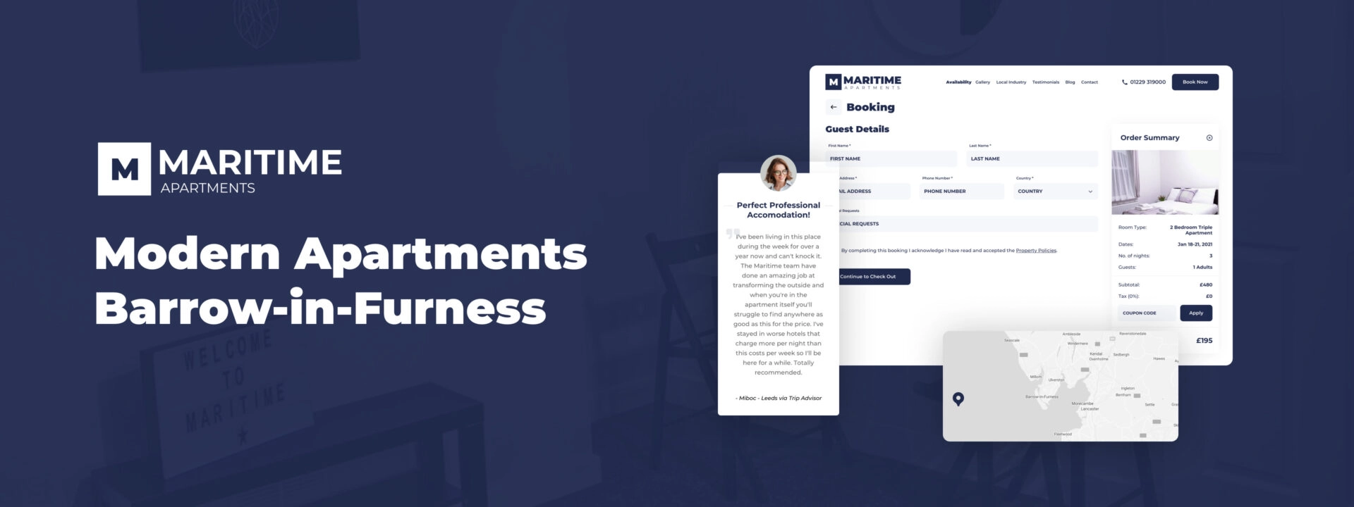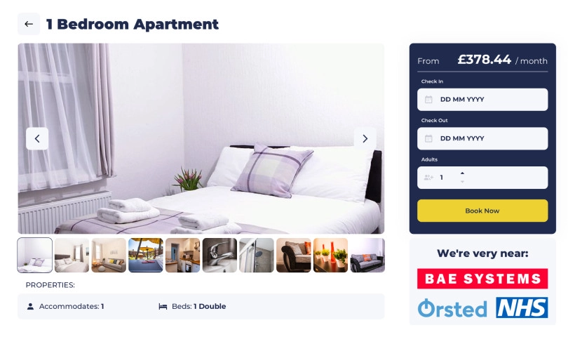 Maritime Apartments is a functional and handy platform providing tourists with various amenities and services in Barrow-in-Furness. The product’s target audience is contractors and business people who need accommodation in Barrow-in-Furness. The customer’s goal is to have a responsive website to help users quickly and efficiently find a suitable place to rent. People should have an opportunity to quickly and conveniently search through the apartments option, choose what they like, and immediately book their selection without any problems.