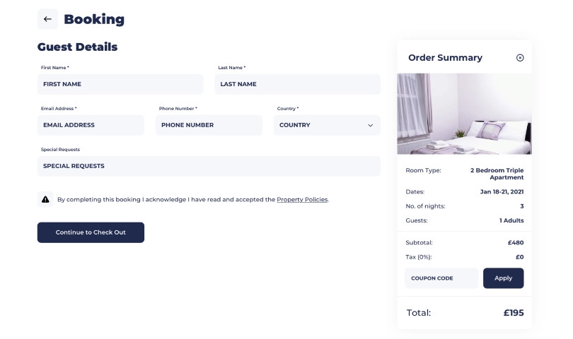 A modern property management and booking platform for coastal apartment rentals, featuring availability calendars, guest management, and payment processing.