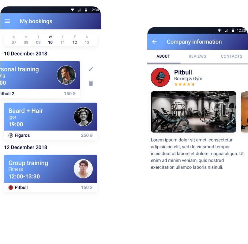 We created a highly efficient SaaS platform for gyms and barbershops that allows networks to optimize eCommerce processes, simplify booking for customers by making it fully automated and self-service, and increase staff efficiency. The platform includes a web admin panel for businesses and two native iOS and Android mobile applications for their clients. Mobile apps allow clients to book specialists for individual procedures and training, book a spot in group training, check personal schedules, and purchase products like protein (for gyms), shampoo (for barbershops), etc. The admin panel allows businesses to see and manage their clients, add or edit data on specialists, items, activities, loyalty programs, etc.