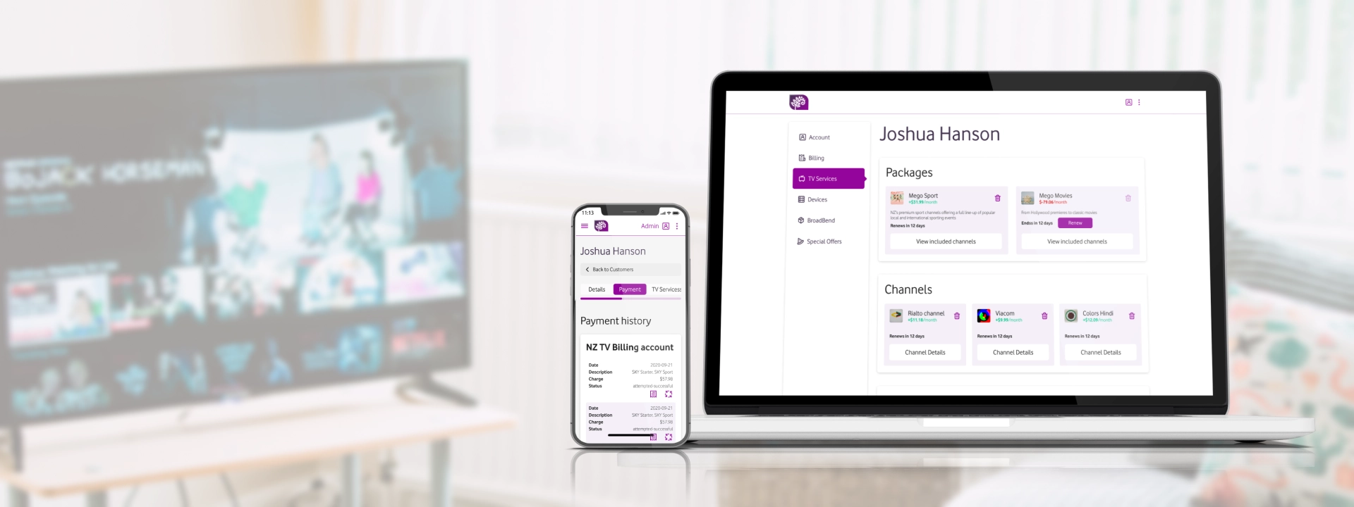 Our team created the client side of the TV providing platform that comprises two systems – for customers and administrators. The customer system is implemented as personal accounts where every user can enter and edit personal information, activate TV devices, choose a suitable payment method, view payment history, get invoices, download them as PDF, add several TV devices, synchronize them, get special offers, etc.