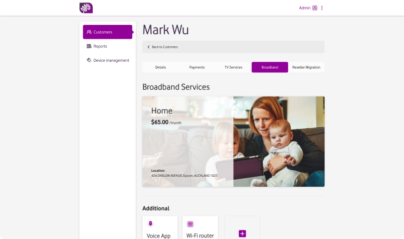 The admin panel allows managers to view all customers, their info, and event logs. Customer Account actions include but are not limited to activating, deactivating, and changing payment methods, subscriptions, TV devices, etc. Managers can also add and remove channel packages with detailed information like name, cost, status, channels included, discounts, etc.